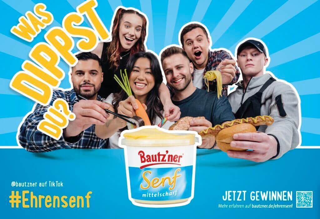 Bautz’ner: The popular mustard manufacturer Bautz’ner asked six content creators, including Karim Jamal and Liam Carpenter, the question: “Was dippst du?” (What do you dip?) as part of its innovative #Ehrensenf (HonourMustard) campaign. The creators each presented a food that they like to dip in mustard – ranging from classic flavours such as bratwurst to unconventional combinations such as sushi. The campaign was supplemented by out-of-home elements: the influencers’ presence extended beyond digital platforms and manifested itself on advertising posters in public spaces and even on the mustard tubs in supermarkets. The content creators published various content pieces from May to July 2023. The out-of-home elements were also launched during this period. The campaign therefore went beyond a one-off advertising collaboration and also shows that Bautz’ner wants to build a long-term relationship with the creators.