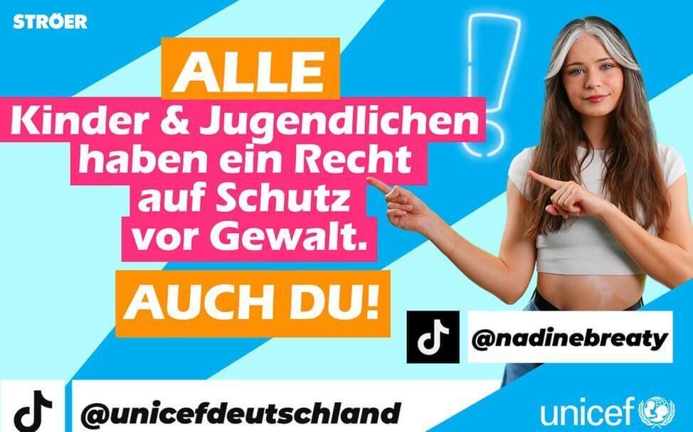 UNICEF Germany: UNICEF Germany’s children’s rights campaign in collaboration with the media company STRÖER focused on raising awareness of children’s rights and raising public awareness. As part of this, a number of well-known TikTok creators such as Nadine Breaty and Herr Anwalt volunteered to set an example against cyberbullying, racism and discrimination. In this out-of-home campaign, the influencers appeared with strong statements on digital advertising spaces throughout Germany – not excluding continuation. The content creators not only act as brand ambassadors in this one campaign but also actively campaign for this socially relevant topic outside of it, thereby making it clear to their community that they are committed to a cause close to their hearts. Nadine Breaty and Herr Anwalt in particular regularly take a stand on social and charitable issues – whether on their social media accounts or outside of them in TV shows or documentaries. This in turn creates an authentic connection to the values of the charity organisation UNICEF.